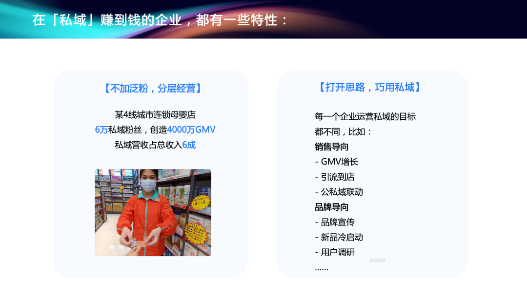 第一个角度,我们通常会考虑通过私域来推动销售,增加GMV。这当然是私域的一个重要价值,也是许多企业都非常关注的一点。