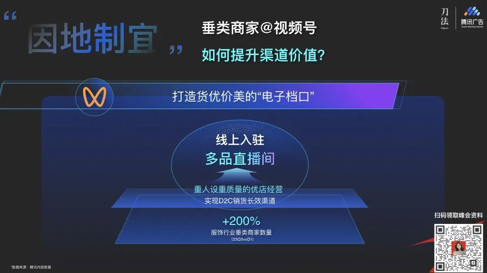 最后,希望大家能关注到一个底层逻辑,无论用哪种打法,视频号都不是一个单独的渠道。作为商家,一定要思考它和公众号、小程序的关联。视频号是一个工具,不会和其他渠道抢流量,而是帮助商家在每个渠道的生意做得更好。
